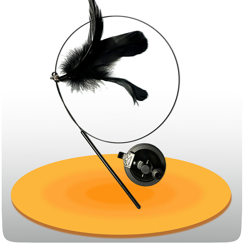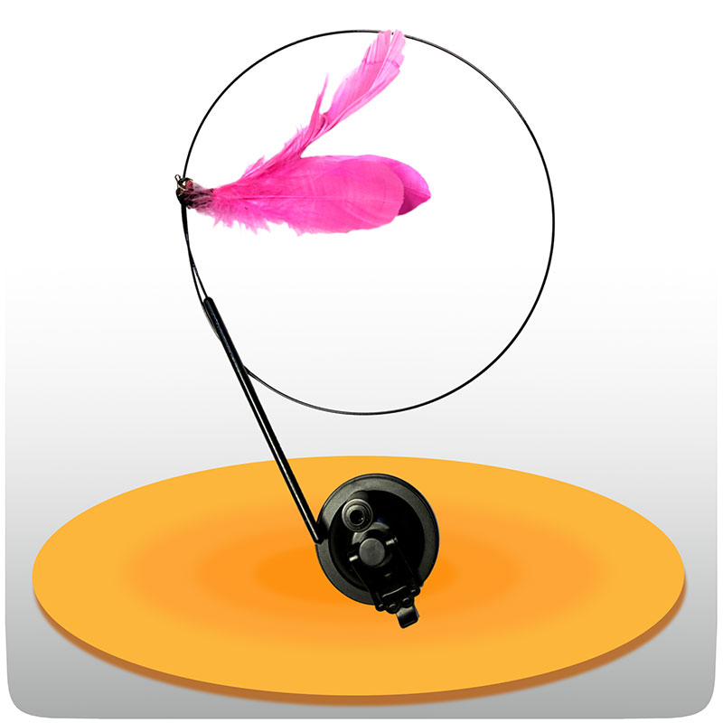 اسباب بازی قلاب پر چسبان گربه، یک اسباب بازی هیجان انگیز و هوشمندانه برای سرگرم کردن گربه هاستکه بدون دخالت سرپرست، ساعت ها گربه را درگیر بازی می کند. این محصول با استفاده از پمپ چسبنده تخلیه هوا روی سطوح صاف مثل کاشی، سرامیک و شیشه ثابت می ماند و یک سیم فنری معلق دارد که در انتها آن زنگوله و پر قرار گرفته است. حرکت پویا و معلق این اسباب بازی قلاب پر چسبان گربه ، حس شکار طبیعی را در گربه فعال کرده و او مدام برای گرفتن آن به هوا میپرد.
