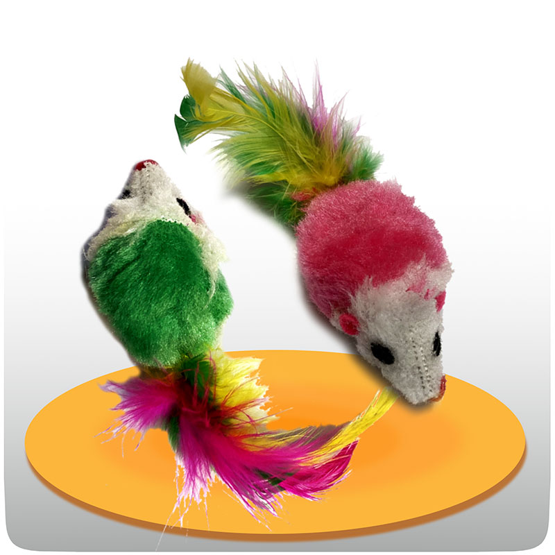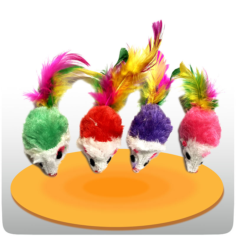 اسباب بازی گربه پک 4 عددی موش عروسکی پارچه با کیفیت بدنه، پر دم، توپ صوتی داخلی