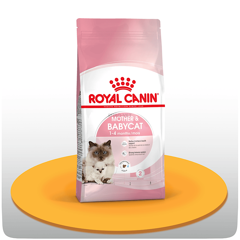 غذای خشک مادر اند بیبی 2kg رویال کنین مخصوص گربه مادر باردار و گربه شیرده و نوزاد گربه تا 4 ماهگی همه ی نژادها میباشد.